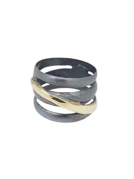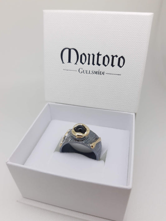 Black silver & gold ring with zirkon